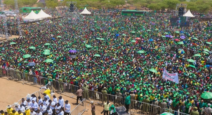 Umati mkubwa wa wananchi na Wanachama wa Chama Cha Mapinduzi (CCM) waliojitokeza leo kwenye Viwanja vya Shule ya Igurwa, Wilayani Bukombe, Mkoani Geita leo Jumapili Oktoba 12, 2025 kumlaki na kumsikiliza Mgombea wa nafasi ya Urais wa Jamhuri ya Muungano wa Tanzania kwa tiketi ya Chama Cha Mapinduzi Dkt. Samia Suluhu Hassan aliyeanza ziara yake ya Kampeni katika Mkoa huo akitokea Mkoani Shinyanga. Kabla ya mkutano huo alipita kuwasalimia na kuwaomba kura wananchi wa Wilaya ya Mbogwe.